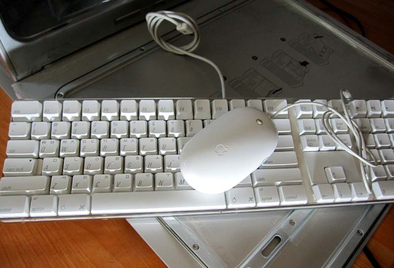 Hardware accessories Apple Keyboard, Apple Mouse, USB keyboard extension cable, DVI to VGA adapter, modem cable, AirPort antenna