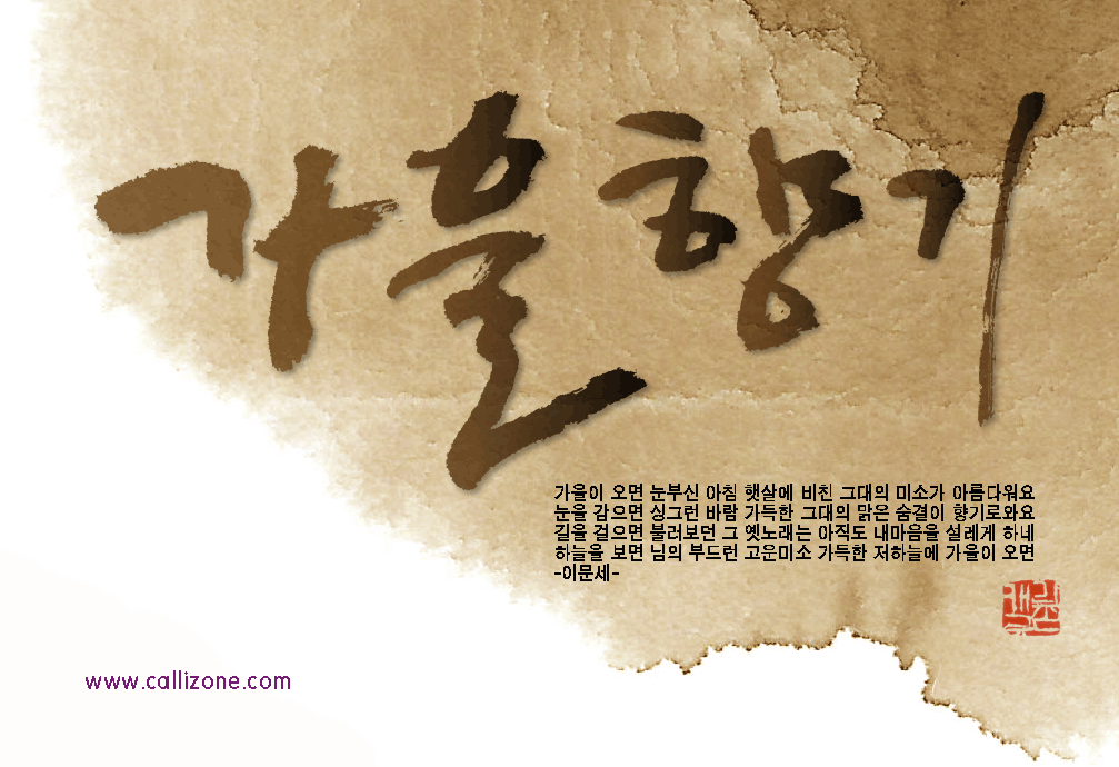 [직접쓴 캘리} 가을향기 callizone 일반 1 9394 2007.10.02 14:07 http://www.callizone.com/home/index.php + 568 가을이 익어가고 있습니다. 가을을 음미하면서 한번 만들어 보았습니다. 회원님들 감기조심 하세요^^